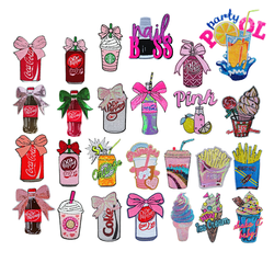 Hot Sale Cute Iron-on Backing Lovers Gift Decorative pink Red Valentine Day Fabric Sequins Embroidered Coke Bottle Ice Cream